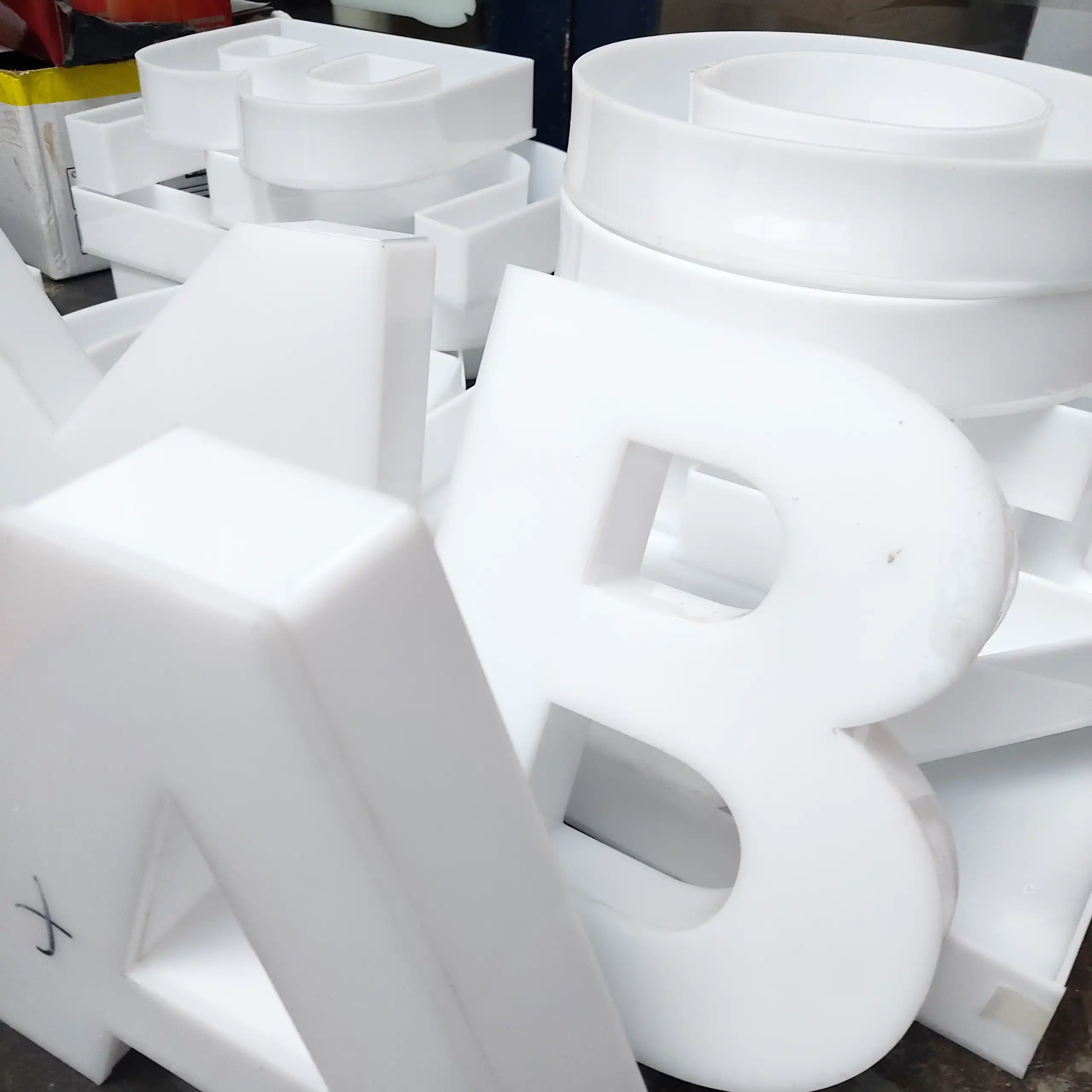 Realizamos piezas íntegramente en acrílico o combinadas con otros materiales: letras macizas cortadas a láser, letras retroiluminadas con laterales de aluminio, porta hojas y porta folletos, exhibidores, cartelería, mamparas sanitarias, protecciones para maquinaria, atriles, buzoneras, campanas y mucho más.